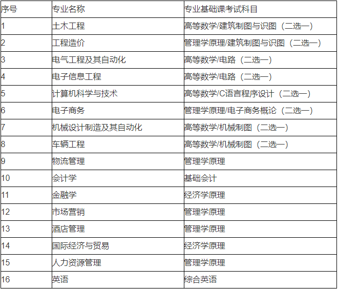 2021年南昌交通学院统招专升本专业基础课考试科目一览表
