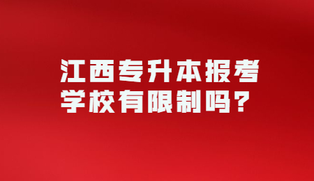 发布时间:2021-07-13 浏览次数:2562很多升本的新生对于江西专升本报考学校有限制吗?还不清楚。那么针对这个问题下面就详细为各位解答一下吧。 -
