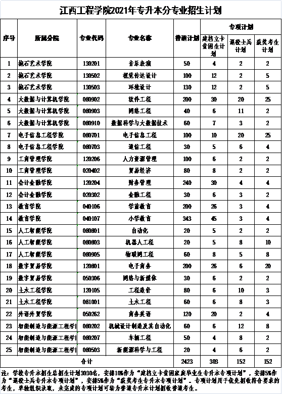 发布时间:2021-04-24 浏览次数:2605【导读】2021年江西专升本考试于6月5日正式开考,祝各位考生旗开得胜!以下是江西专升本网为大家收集整理的2021年江西工程学院专升本招 -
