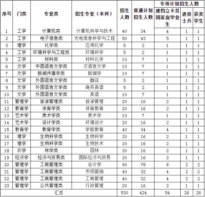 2021年井冈山大学专升本招生计划