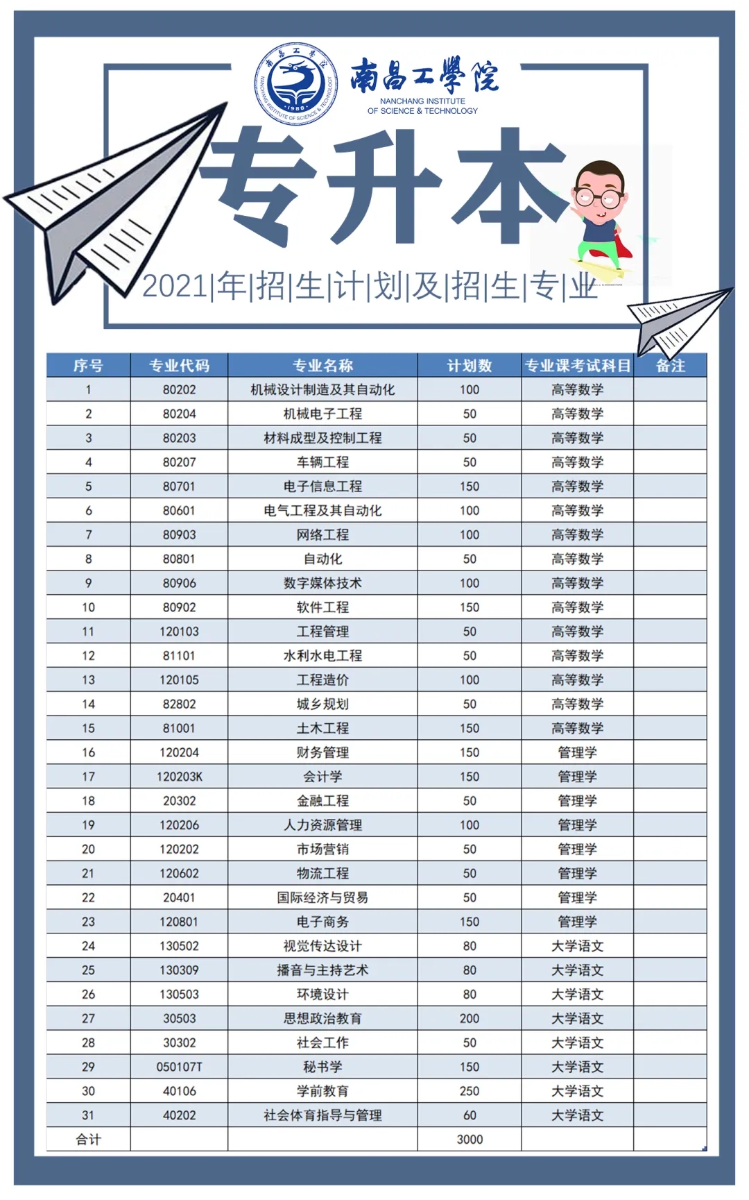 发布时间:2021-04-08 浏览次数:13672021年江西专升本考试还有1多月的时间,接下来江西专升本网为大家介绍南昌工学院招生计划和考试科目,有需要的同学可以了解一下。 -
